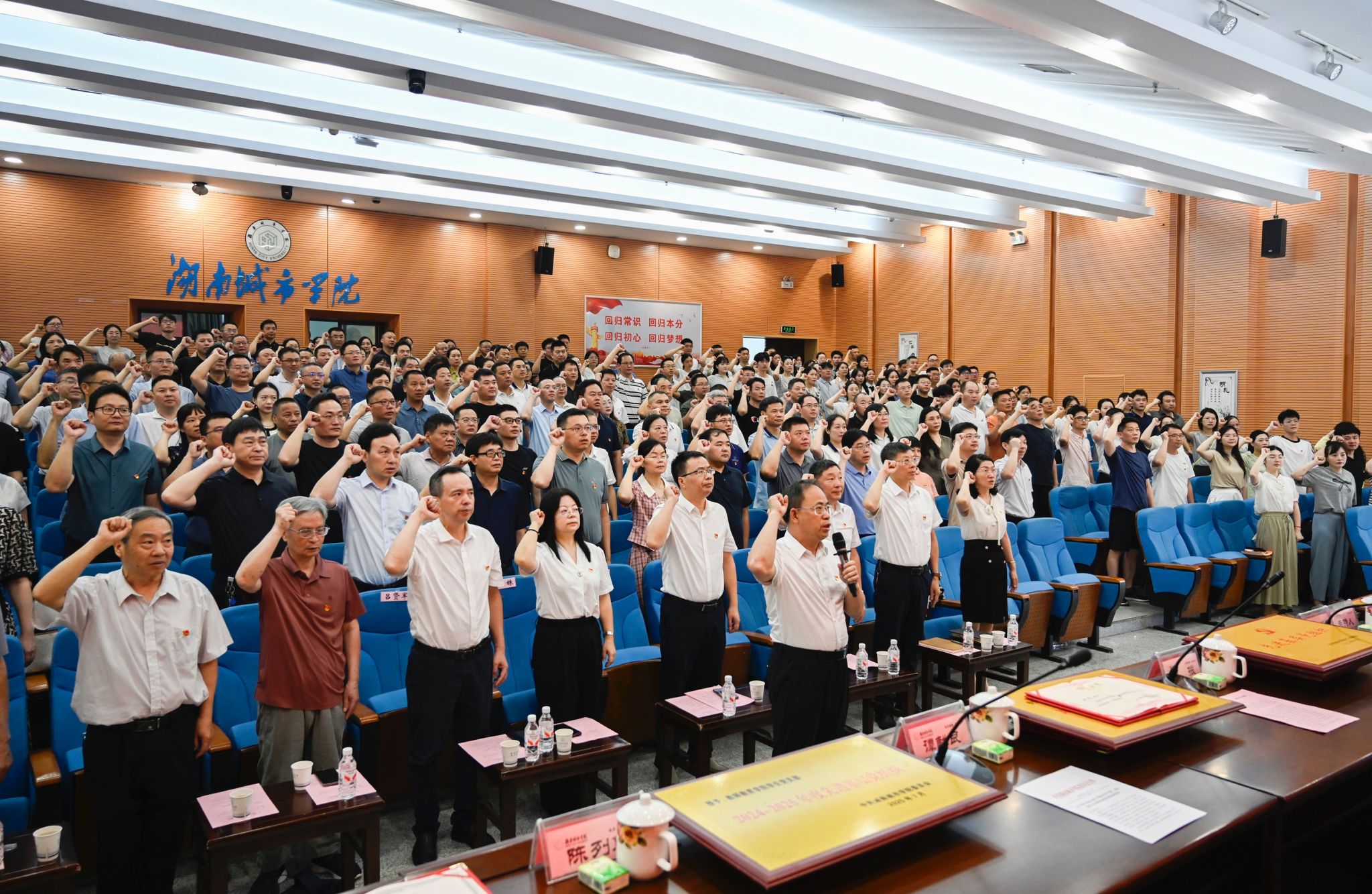 “我志愿加入中国共产党,拥护党的纲领,遵守党的章程,履行党员义务,执行党的决定,严守党的纪律……”校长何振领誓,他带领全体党员举起右拳,重温入党誓词。宣誓声铿锵有力,令人心潮澎湃,倍感振奋。