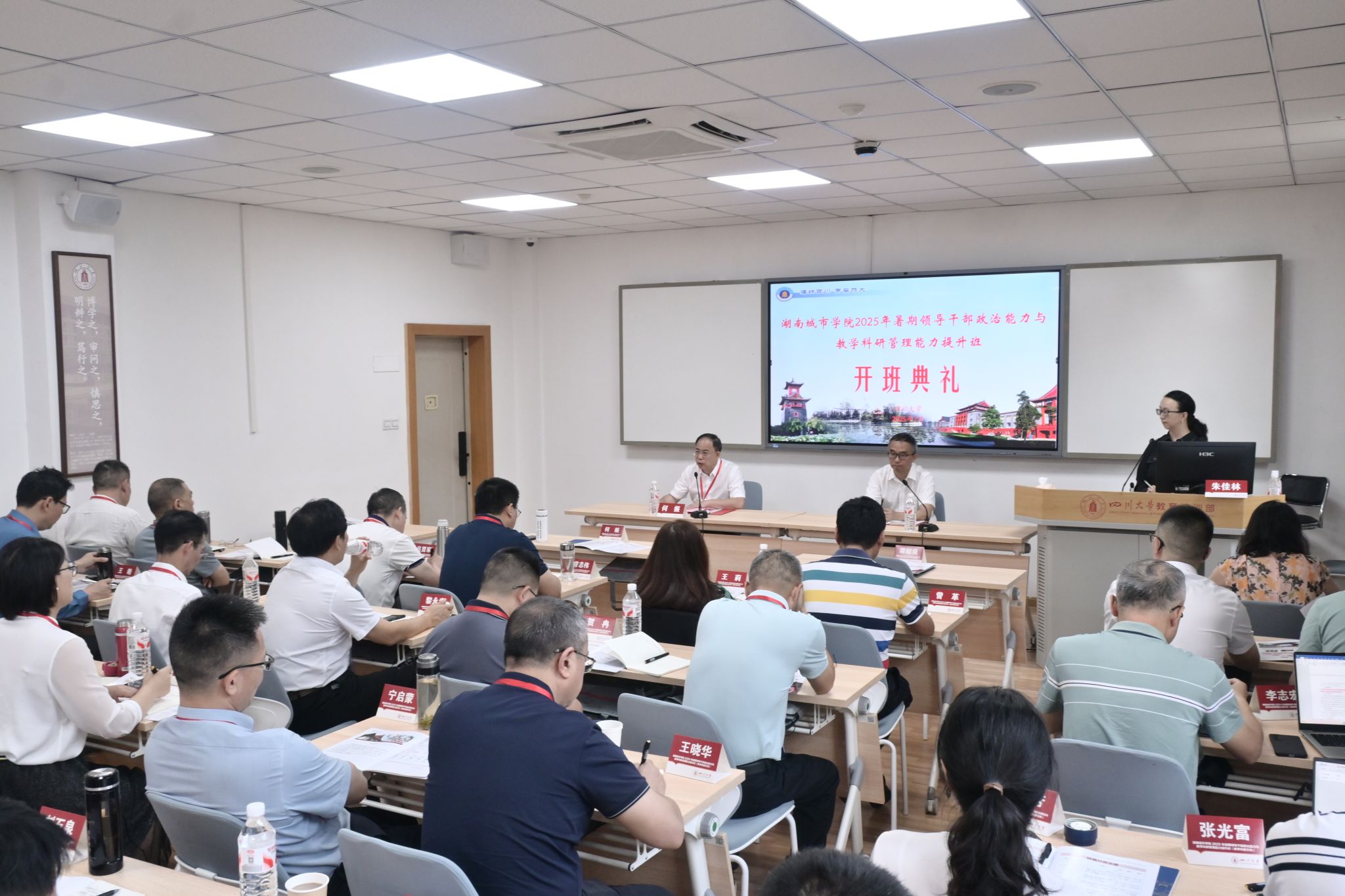 本网讯为进一步强化学校领导干部的政治修养,全面提升教学科研管理能力,7月14日至19日,我校在四川大学举办2025年暑期领导干部政治能力与教学科研管理能力提升班,校领导何振、谭献良、徐姝、孙倩、吕贤军及部分职能部门负责人和二级学院院长、副院长共40余人参加培训。此次培训历时6天,采用专家讲座、现场教学、学习研讨等多元化形式,为领导干部“充电赋能”。