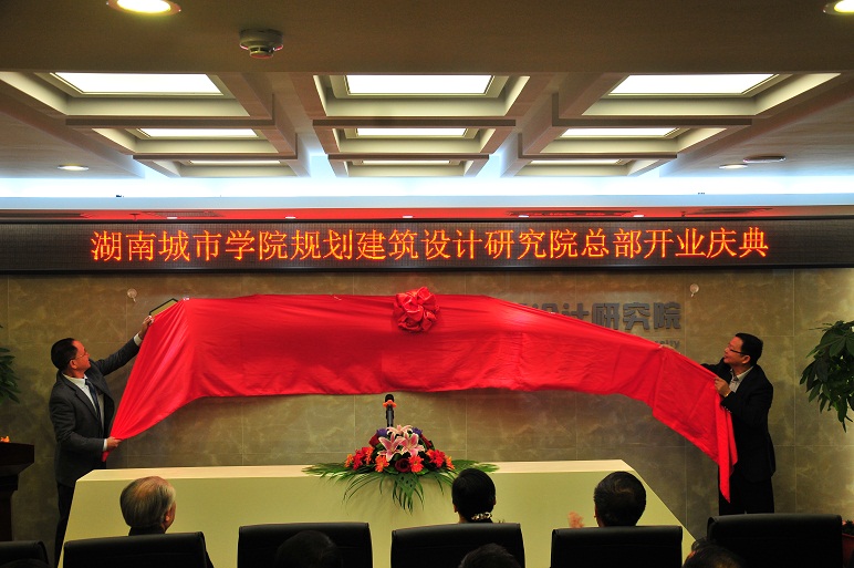 (本网讯)10月16日上午,荣耀体育官方网页版_荣耀体育(中国)规划建筑设计研究院长沙总部开业典礼在凯乐国际城9楼隆重举行。校党委书记赵运林、校长李建华为“荣耀体育官方网页版_荣耀体育(中国)规划建筑设计研究院总部”揭幕,吹响了规划建筑设计研究院进军长株潭市场的号角。