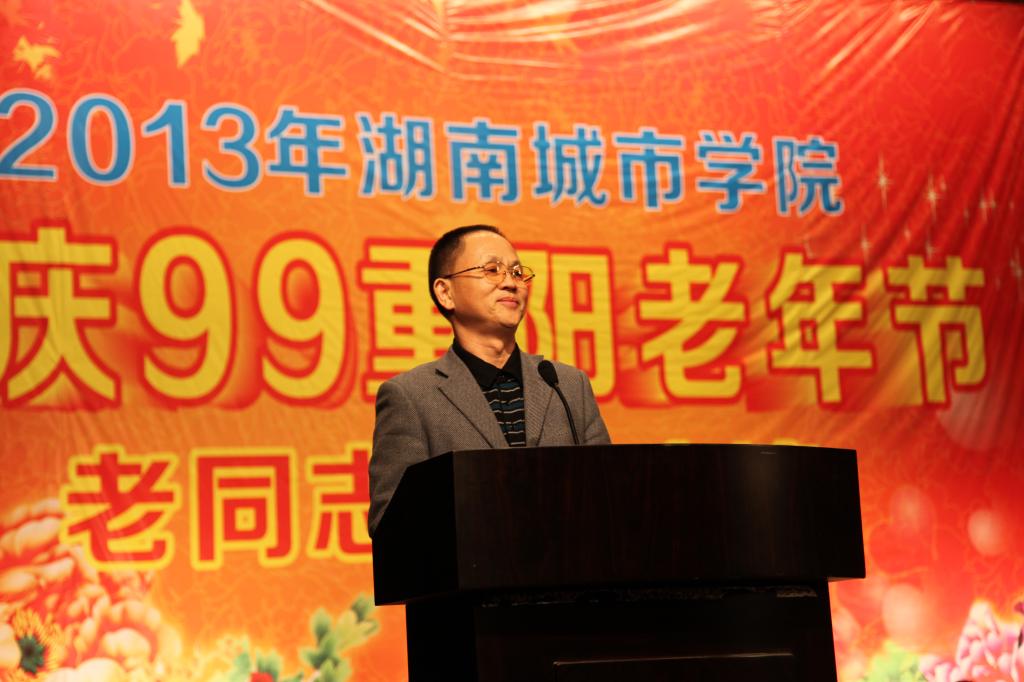 党委书记赵运林在会上致词。他首先代表学校党委、行政向全体老同志致以节日的问候,向所有支持和关心我校离退休工作的领导和教职员工致以诚挚的谢意。赵运林高度赞扬了我校离退休老同志在学校建设和发展过程中做出的突出贡献。他说,离退休老同志几十年如一日,以满腔热血为学校的建设和发展奉献了自己的青春和力量,创造了辉煌的业绩。今天,离退休老同志们仍然是“老骥伏枥、志在千里”,通过各种方式为学校和社会的改革、发展和稳定做着自己的贡献。赵运林在讲话中向老同志通报了学校这一年来在教学、科研、校园建设等各方面取得的丰硕成果。