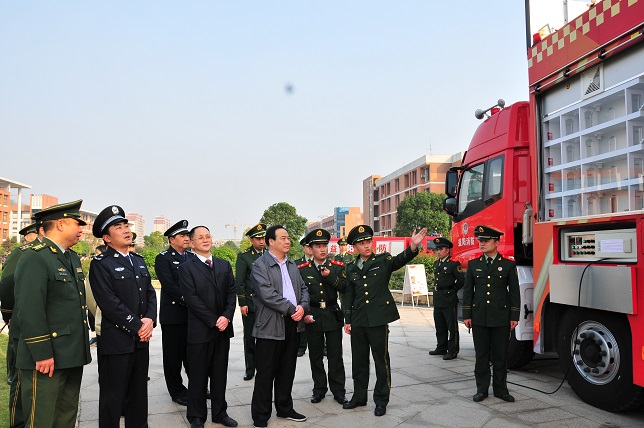 下午,在第23届消防日到来之际,益阳市大型消防主题巡回宣传活动在我校兴城广场正式启动。党委书记赵运林、副校长丁亮中,益阳市人民政府副市长方华堂以及市人大、市政协、益阳市消防支队有关领导和师生代表2000多人参加。启动仪式由市政府副秘书长杨禄仁主持。