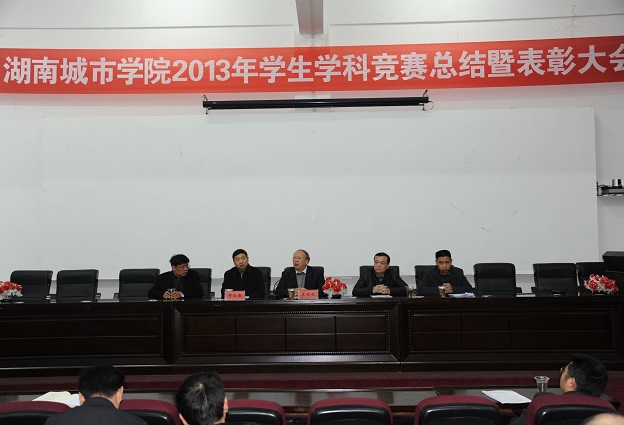 教务处副处长文明才在会上总结了我校学科竞赛参与情况。2013年,学校在全国、湖南省各类学科竞赛中取得了优异成绩,成功承办了“湖南省第二届大学生结构设计竞赛”和“湖南省第十届高校优秀设计作品展”。全年参加了全国电子设计竞赛等21大项目竞赛,有5个项目竞赛成绩取得了重大突破,共获奖191项。其中国家级一等奖2项、二等奖2项、三等奖1项;省级一等奖11项、二等奖43项、三等奖46项;其他86项,为学校赢得了良好的声誉。