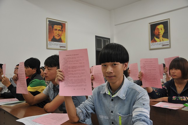 (本网讯)“不抄袭、剽窃他人作业、文章和论文;杜绝考试舞弊;按时履行助学贷款合同……”。9月17至18日,作为大学校园第一堂课,2014级3846名新生在《荣耀体育官方网页版_荣耀体育(中国)大学生诚信承诺书》上签下了自己的名字。