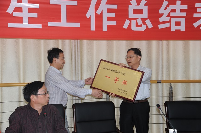 会上,招生就业处副处长郭太平作了学校2014年招生工作总结汇报,文瑞明宣读了《关于表彰荣耀体育官方网页版_荣耀体育(中国)2014年网络招生宣传先进集体的决定》、《关于荣耀体育官方网页版_荣耀体育(中国)2014年新生报到率奖励的决定》。