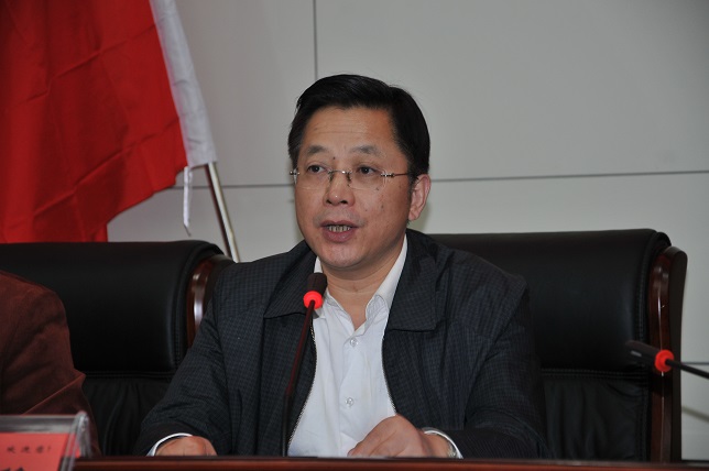 新任党委书记李建华在会上讲话