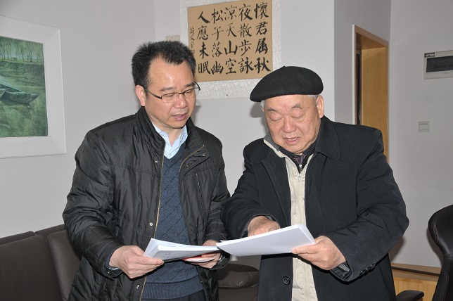 汤可敬教授向李建奇介绍即将出版的著作