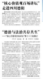 ,我校党委书记李建华教授应“核心价值观百场讲坛”邀请,为四川德阳市旌阳区700余名干部群众作了主题为《让道德滋养法治精神》的演讲。演讲引起了包括中央电视台、人民日报、新华社、光明日报、经济日报、中国青年报等多家央媒在内的全国主流新闻媒体关注,同时有280万网友通过网络直播观看了节目,20余万网友通过微博、论坛等参与了交流互动。