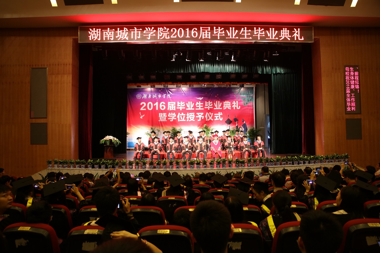 (本网讯)6月15日至16日,我校2016届本科生毕业典礼暨学位授予仪式在音乐厅隆重举行。在家的校领导、2016届本科毕业生代表、在校生代表、毕业生家长代表、教师代表以及相关部门负责人、各二级学院院长、书记、副书记、全体毕业班辅导员参加典礼。毕业典礼由党委书记罗成翼主持。