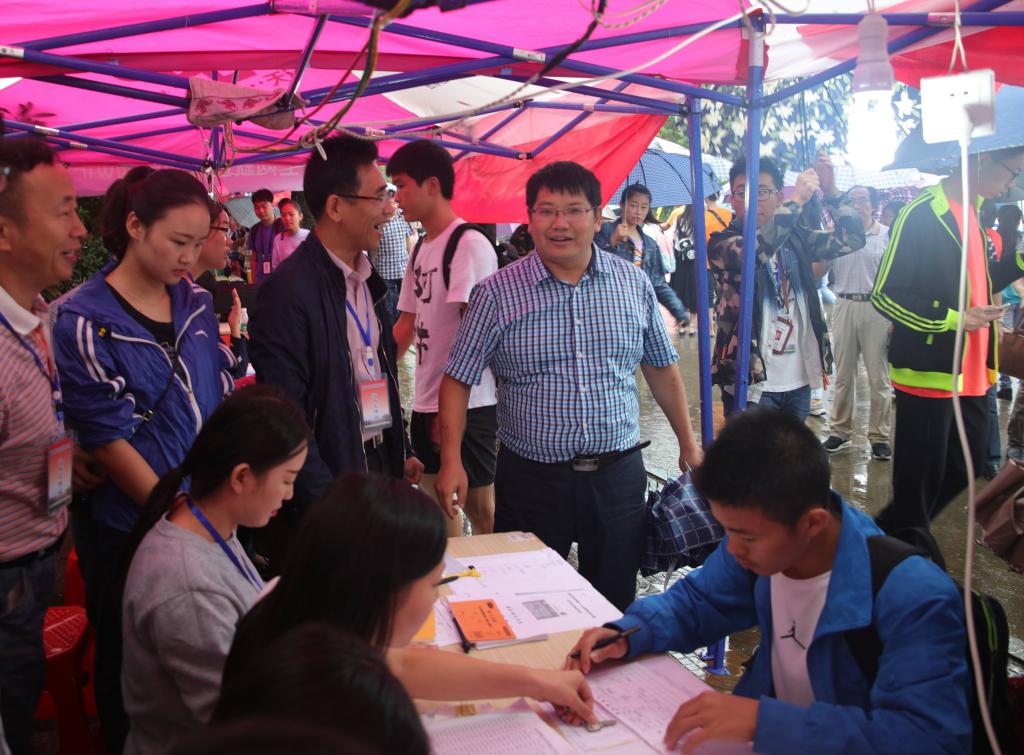 (本网讯)9月10日上午,校领导罗成翼、李建奇、汤放华、何振、雷存喜在相关部门负责人陪同下,先后冒雨深入迎新现场检查指导迎新工作,亲切看望报到的新生和家长,并慰问了迎新一线的教职工和学生志愿者。