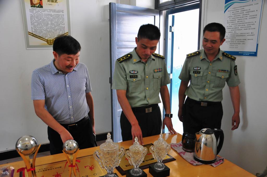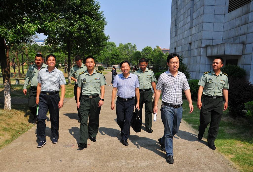 (本网讯)24日上午,湖南省军区作训处副处长毛树根、参谋丁行行,湖南大学武装部部长戴谋元,省军区教导大队副主任康健鹏一行四人,赴我校进行学生军训和军事教学工作督察。益阳军分区作训办主任杨胜前陪同督察。副校长谭献良及武装部相关人员热情接待了湖南省学生军训督察考评组。