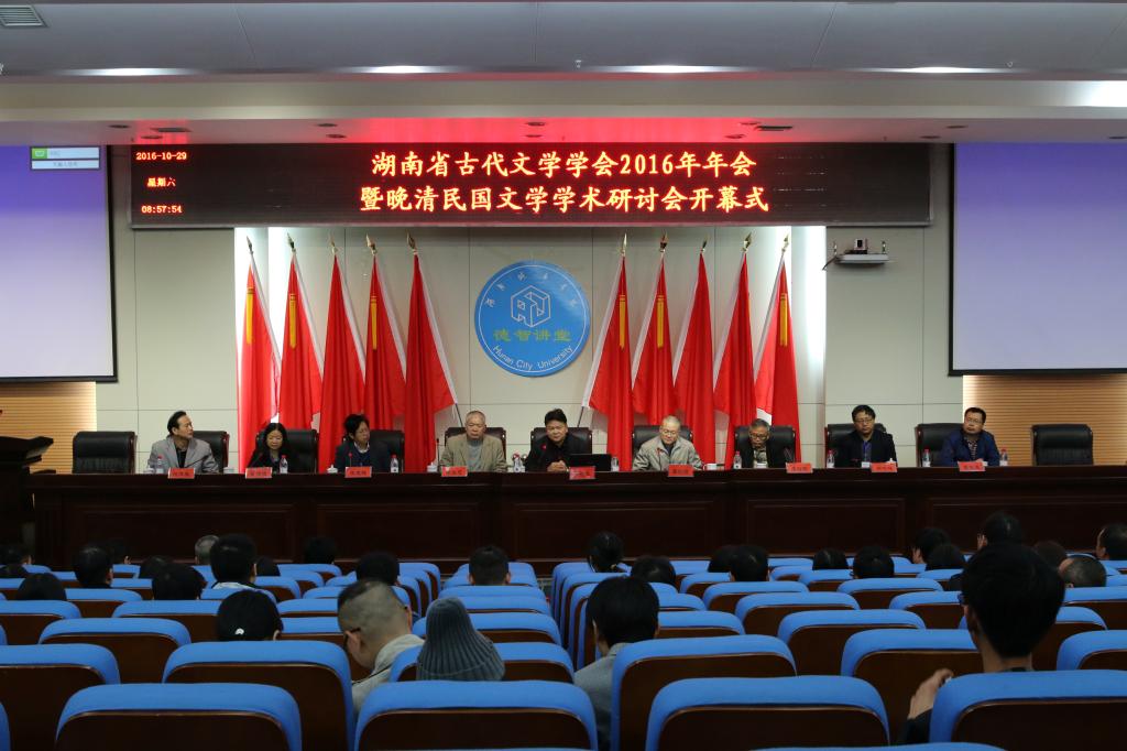 (本网讯)10月28日至10月30日,湖南省古代文学学会2016年年会暨晚清民国文学学术研讨会在我校隆重召开。本次会议由湖南省古代文学学会主办、我校文学与新闻传播学院及晚清民国文学研究所共同承办。来自省内外的50多位专家出席了本次会议。