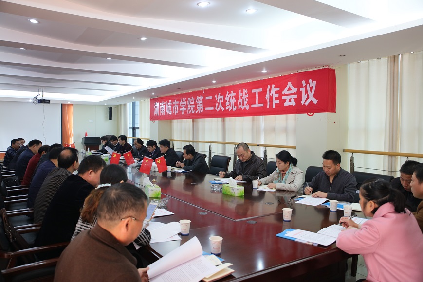 (本网讯)为深入贯彻中央、省委统战工作会议和第二次全省高校统战工作会议精神,11月4日上午,我校在办公楼三楼一会议室召开了第二次统战工作会议。党委书记罗成翼、党委副书记汤放华,以及统战部、各党总支部、直属党支部书记、统战委员,市、校两级各民主党派负责人,各民主党派支部(支委)主任、副主任、组织委员、宣传委员、社会服务委员,无党派人士代表出席了会议。