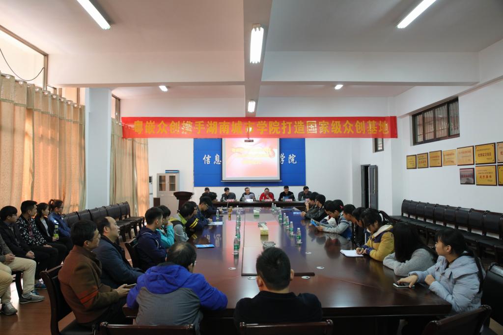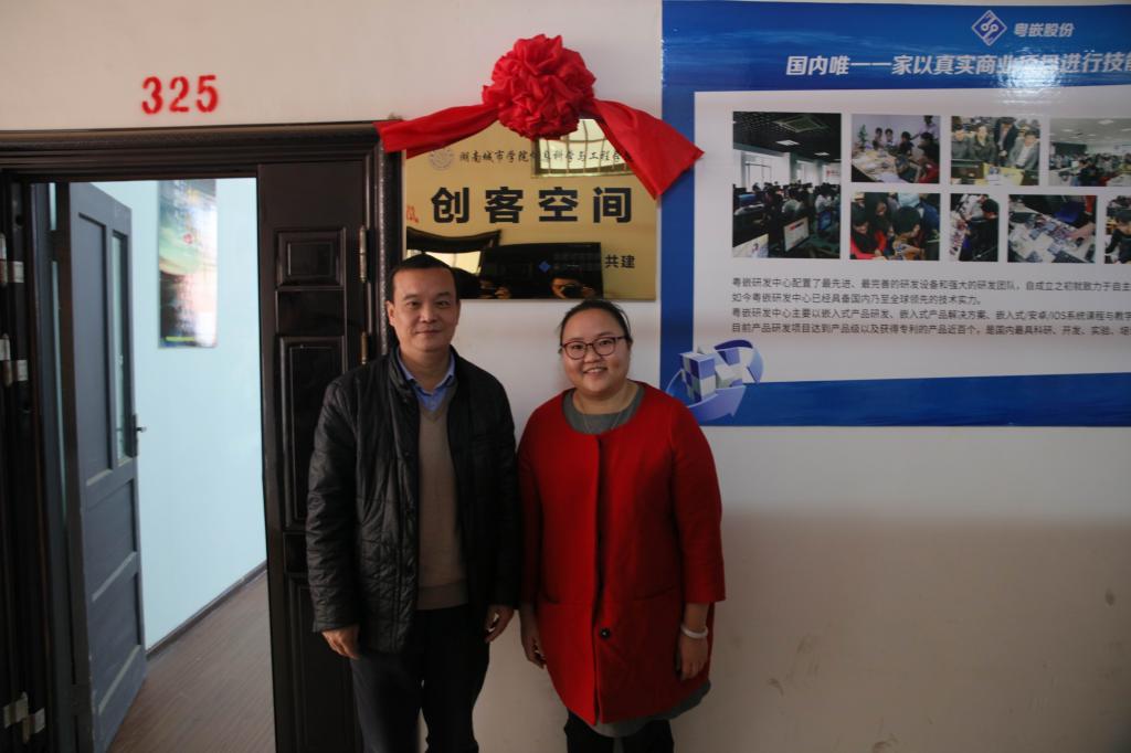 (本网讯)2016年11月11日上午10时,粤嵌众创携手荣耀体育官方网页版_荣耀体育(中国)打造的国家级众创基地揭牌仪式在信息楼326会议室隆重举行。副校长雷存喜,教务处负责人,信息科学与工程学院党政班子成员,粤嵌股份湖南分公司总经理朱容、技术部总监周龙、运营总监常红英,信息科学与工程学院教师代表及学生代表参加了此次揭牌仪式。