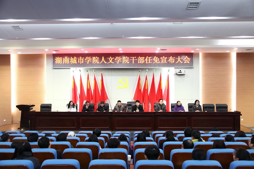 在图书馆报告厅,校党委副书记汤放华、组织部副部长邓中日出席了新组建的人文学院全体教师大会。邓中日宣读了学校党委关于人文学院领导班子任职决定。