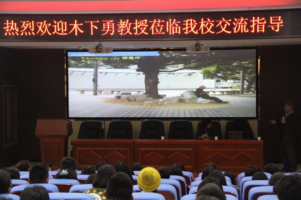 讲座过程中,木下勇不时与在场学生互动交流,就师生们提出的问题做了详细的解答和精彩的点评。(汤慧、龚敦)