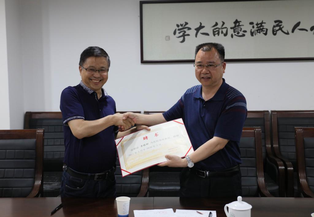 李建奇为李镇彬颁发客座教授聘书