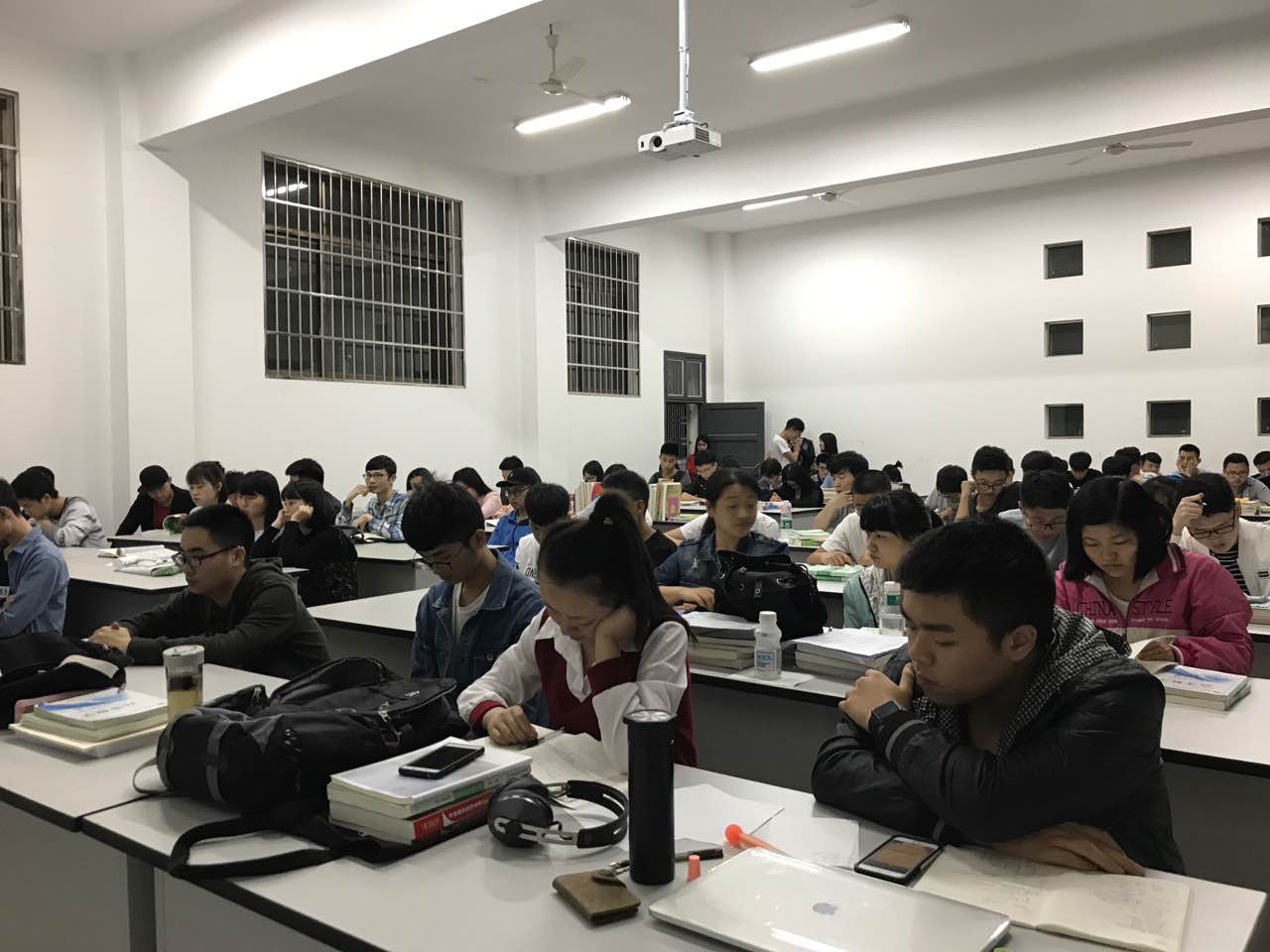 晚上座无虚席的考研教室