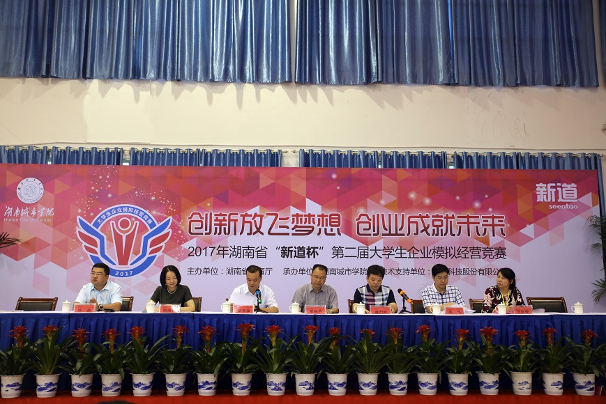 (本网讯)9月22日至24日,2017年湖南省“新道杯”第二届大学生企业模拟经营竞赛在我校体育训练馆隆重举行,大学生企业模拟经营竞赛属省级大学生学科竞赛。此次大赛由湖南省教育厅主办,荣耀体育官方网页版_荣耀体育(中国)承办,新道科技股份有限公司提供技术支持。来自省内35所高校的71支代表队,共355名选手参加比赛。我校荣获组织奖,管理学院派出的三支参赛队伍分别获得一等奖(1个)、二等奖(2个),成绩斐然。