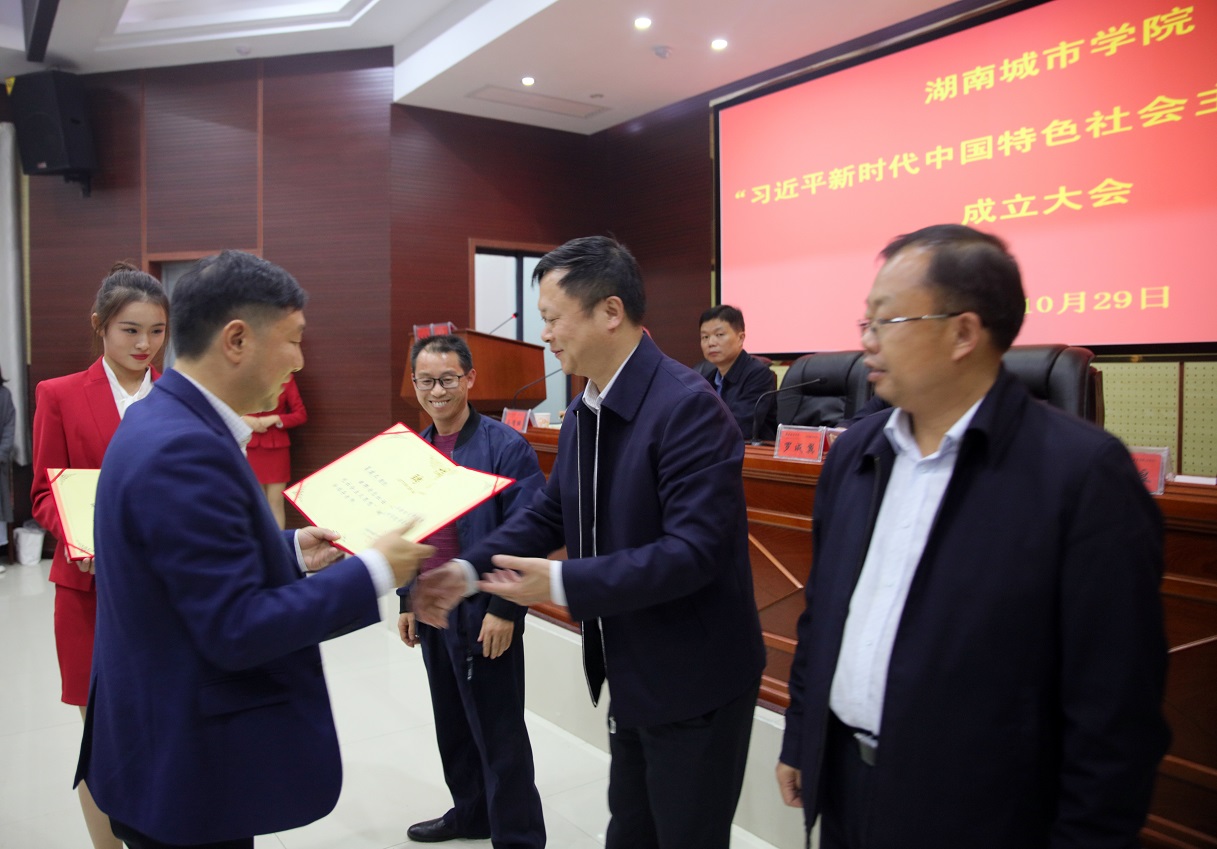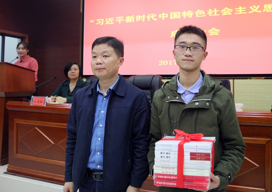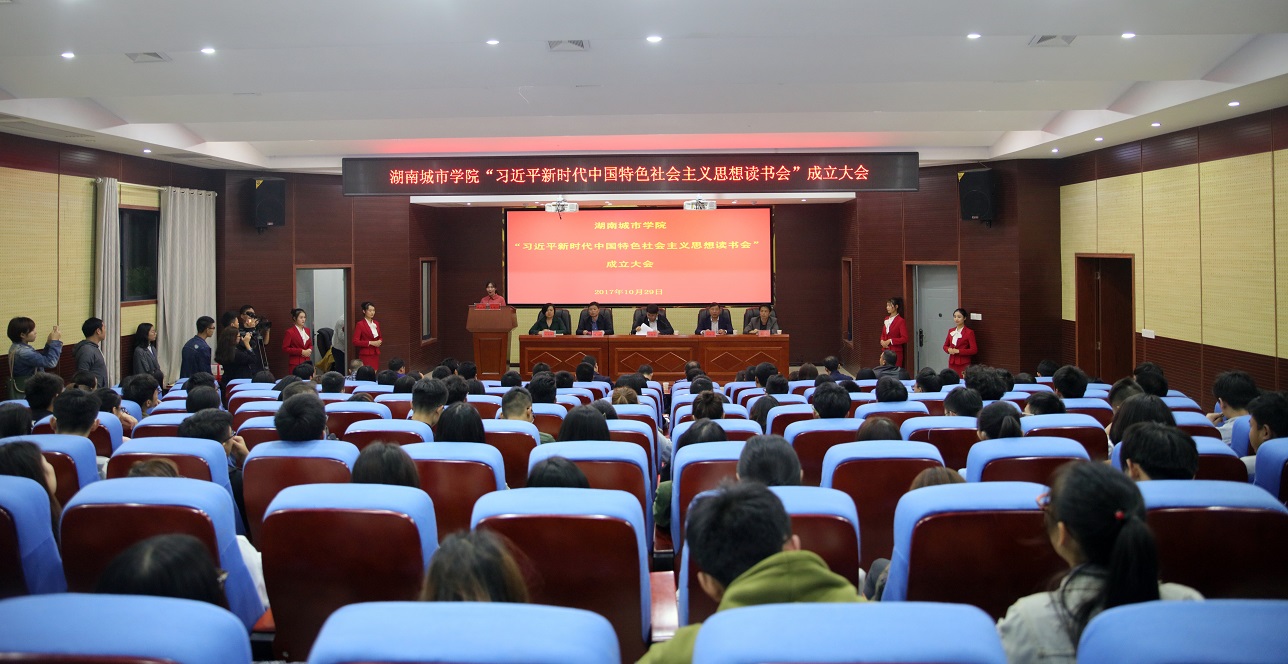 (本网讯)10月29日晚,由学生自主发起并成立的荣耀体育官方网页版_荣耀体育(中国)“习近平新时代中国特色社会主义思想读书会”成立大会在建筑规划楼报告厅举行。党委书记罗成翼、副校长谭献良,宣传部、学工部、团委、马克思主义学院、各二级学院学工部门负责人以及读书会首届会员出席大会。