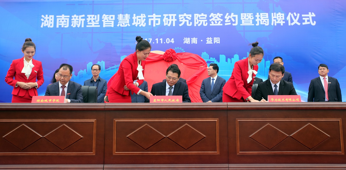 揭牌仪式由市委副书记黎石秋主持。益阳市委书记、市人大常委会主任瞿海、华为技术有限公司轮值CEO徐直军、学校党委书记罗成翼致辞。