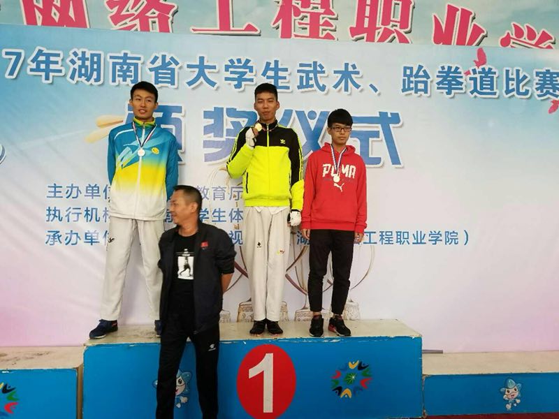 (本网讯)10月27日至31日,由湖南省教育厅主办、湖南省学生体协执行、湖南网络工程职业学院承办的2017年湖南省大学生武术、跆拳道比赛在湖南网络工程职业学院举行。来自全省37所高校的668名武术、跆拳道运动员参加了此次比赛,其中参加大学组跆拳道比赛的有19所高校,我校学子在比赛中努力拼搏,取得了1金2银6铜,团体总分第五名的好成绩。