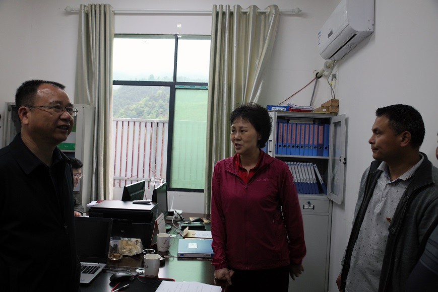 (本网讯)5月22日下午,正在安化县督查扶贫工作的省委常委、统战部长黄兰香,对我校定点扶贫单位田庄乡高马二溪村进行了突击检查。正在扶贫点进行产业扶贫调研的校长李建奇及驻村工作队向黄兰香部长汇报了相关工作。