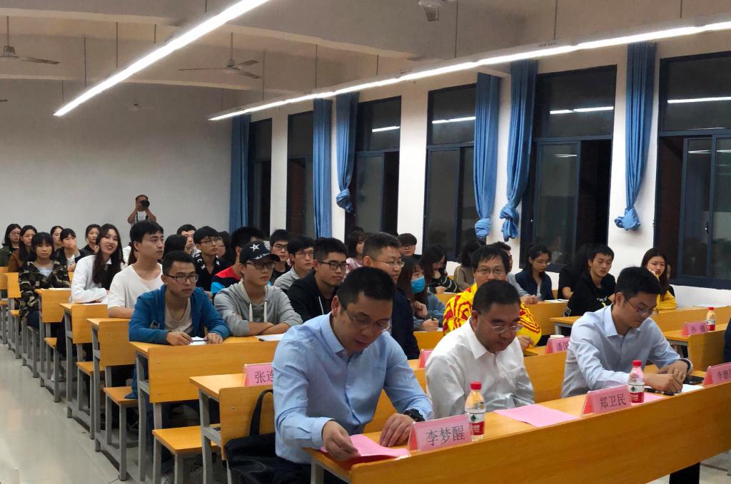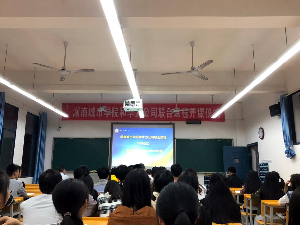 (本网讯)2018年9月28日晚上,我校和华为技术有限公司(以下简称华为)联合课程《智慧社会技术与实践》开课仪式在管理楼305举行。华为湖南政企业务益阳总经理李德强、全球智慧城市业务部教授级高级工程师潘国瑞、智慧城市规划总监李旭东,副校长郑卫民以及湖南智慧城市研究院、信电院、管理学院等相关领导和老师,《智慧社会技术与实践》课程全体选课学生参加了本次开课仪式。
