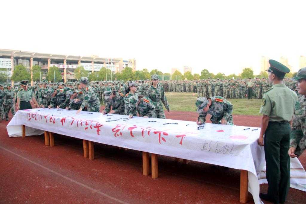 (本网讯)2018年9月 29日下午,我校2018级新生军训汇报总结暨“奋斗的大学∙幸福的人生∙强大的祖国 ”主题签名活动在学校田径场隆重举行。在家的校领导,相关处室、二级学院负责人,辅导员、新生班主任以及5000余名2018级新生参加了军训汇报总结表彰大会。大会由校长李建奇主持。