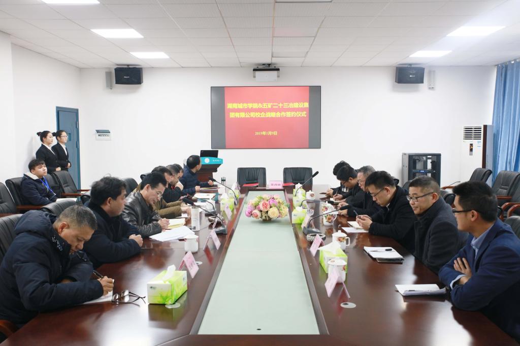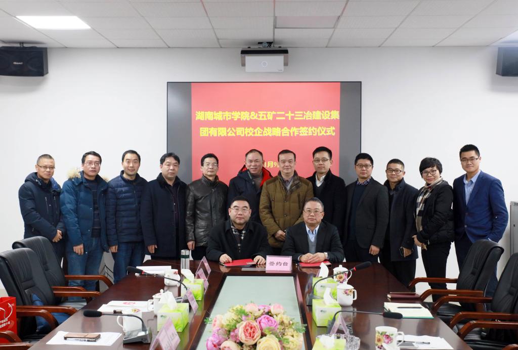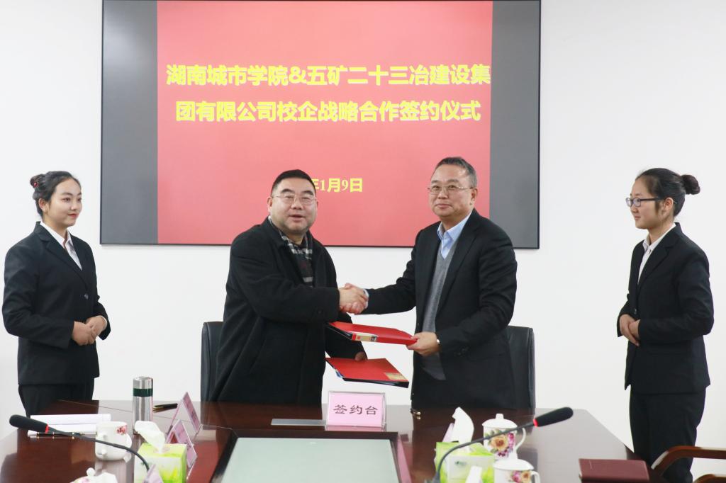 (本网讯)2019年1月9日上午,我校与五矿二十三冶建设集团有限公司校企合作战略协议签约仪式在土木楼会议室举行。五矿二十三冶建设集团有限公司党委副书记、工会主席陈怀忠,人力资源部副总经理程军红,副校长郑卫民、雷存喜以及教务处、招生就业处、土木工程学院相关负责人出席签约仪式。签约仪式由雷存喜主持。