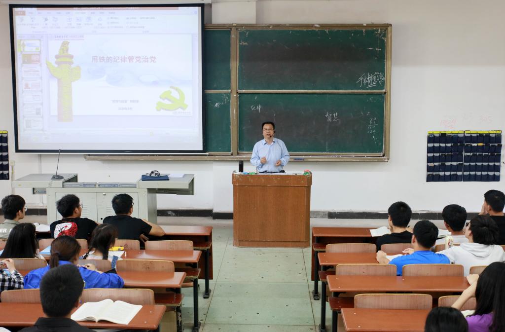 (本网讯)2019年5月22日,校长李建奇在第1教学楼108教室,以《用党的纪律管党治党》为题,为1806701、1806702、1806601班讲授了一堂精彩的形势与政策课。
