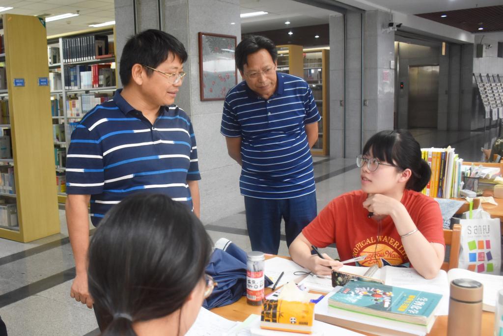 (本网讯)2019年7月18日下午,党委书记罗成翼、副校长夏宏宇一行赴图书馆调研指导工作并看望了部分暑期留校考研学子。