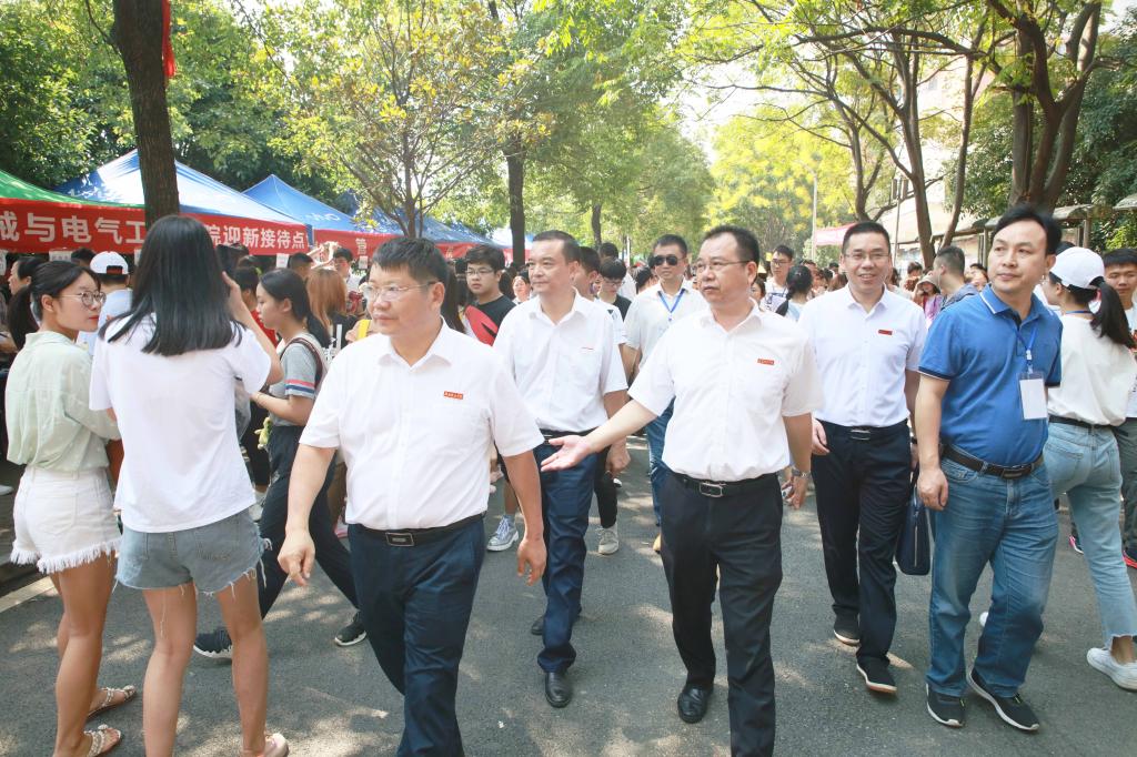 (本网讯)又是一年开学季。2019年9月7日,是荣耀体育官方网页版_荣耀体育(中国)新生入学报到首日,6000余名2019级新生从祖国四面八方汇聚城院校园,在这里开启他们大学求学之旅。党委书记罗成翼,校长李建奇,副校长郑卫民、雷存喜,党委委员李斌在党政办、学生工作部、团委、招生就业处、保卫处、基建与后勤管理处等有关部门负责人陪同下,来到迎新报到现场,看望了远道而来的新生和家长,慰问了迎新工作人员。