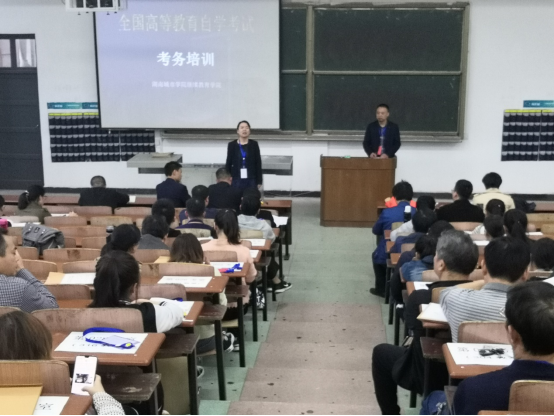 为了切实加强对考点考风考纪的管理,10月18日下午,学校组织所有考务人员和监考老师进行了考务培训,传达了省市自考办关于做好本次考试的精神。会上,姚春梅和益阳市教育局相关领导对本次组考工作提出具体要求,要求全体考务工作人员和监考老师严肃考试纪律,严格遵守考试流程,认真履行考务职责,切实做好相关考务工作。