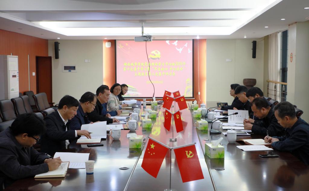 (本网讯)2019年10月23日上午,我校党委理论学习中心组2019年第十次集中学习暨“不忘初心 牢记使命”主题教育第二次集中研讨会在学校一办公楼一会议室举行,在家的学校领导全部参会,会议由党委书记罗成翼主持。