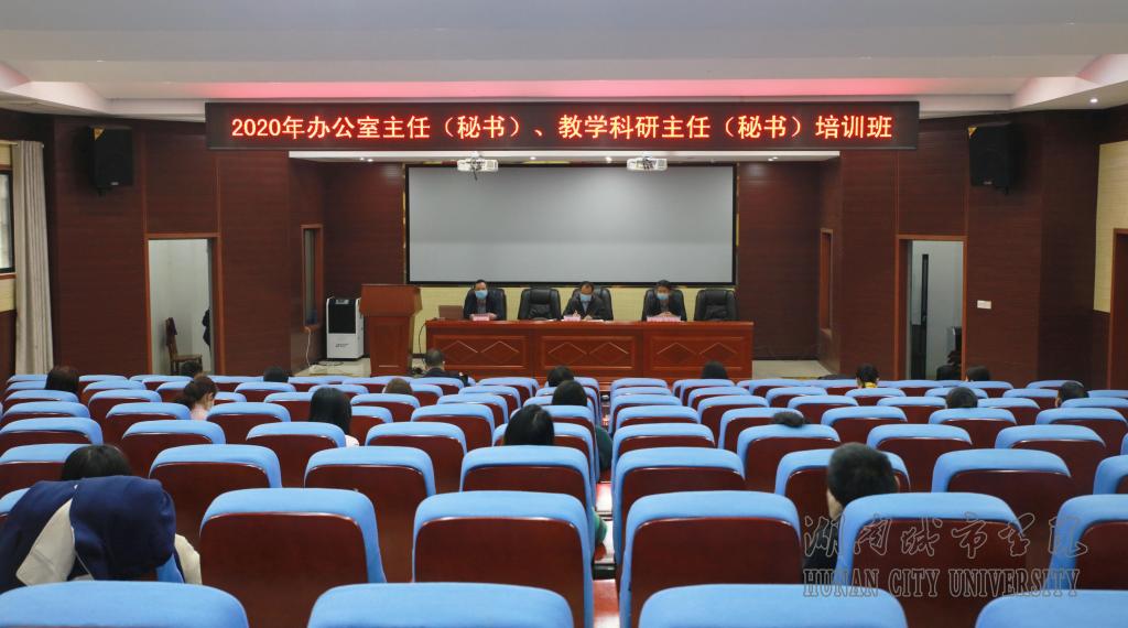 本网讯 2020年3月21日至22日,我校人事处在建规楼学术报告厅举办办公室主任(秘书)、教学科研办主任(秘书)培训班。校长李建奇出席开班仪式并讲话,党委副书记汤放华主持开班仪式。