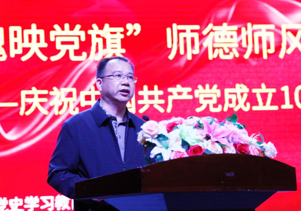 何振对省教育厅《关于举办“师魂映党旗”湖南省师德师风演讲比赛的通知》及比赛规则作了详细解读。汤放华宣布学校庆祝中国共产党成立100周年——“师魂映党旗”师德师风教育活动正式启动。
