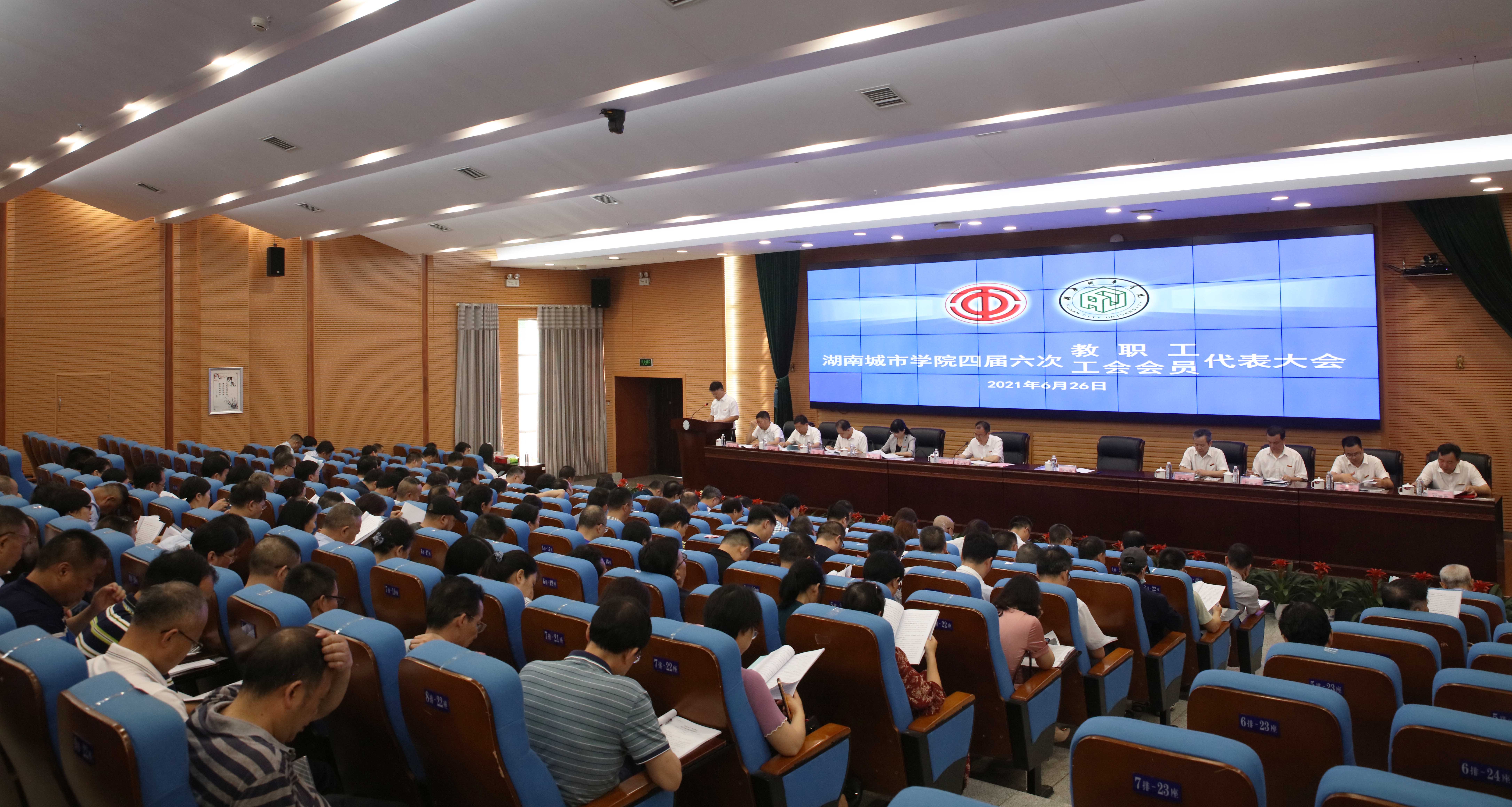 本网讯 2021年6月26日,荣耀体育官方网页版_荣耀体育(中国)第四届六次教职工、工会会员代表大会在图书馆报告厅召开。135名正式代表以及列席代表、特邀代表出席会议。校领导李建奇、汤放华、何旭娟、夏宏宇、何振、雷存喜、谭献良、袁志成、陈列尊、吕贤军在主席台就座。大会由党委书记李建奇主持。