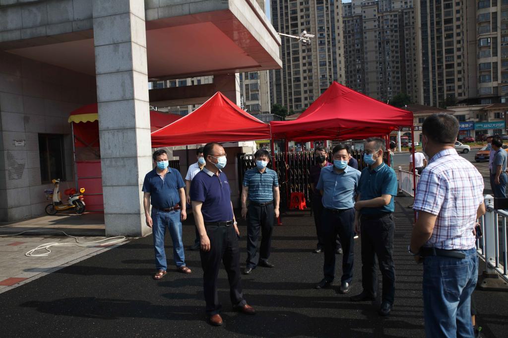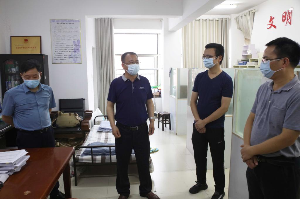 本网讯 2021年8月6日下午,烈日炎炎,党委书记李建奇,副校长夏宏宇、谭献良、袁志成,党委委员、组织部部长吕贤军一行前往校园南门、招生就业处、疫情防控办、学生宿舍、食堂、高压配电室和总值班室等场所,看望慰问了奋战在疫情防控一线的工作人员,对他们的坚守和付出表示由衷感谢。