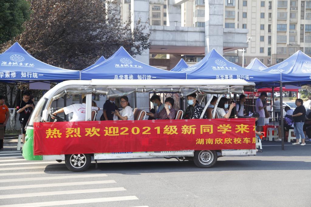 迎新期间,学校在益阳各主要汽车站、火车站提供接站服务,一辆辆满载着新生和行李的迎新大巴,往来穿梭于车站与校门之间,为新生提供着最便捷的服务。校门内,学校为新生准备了校园观光车免费运送行李,一名名青年志愿者们守候在校园观光车旁,随时准备帮助新生将行李搬上车,护送他们完成报到前的最后一段“旅程”。