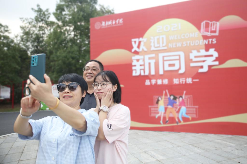 在第一食堂前面,学校为新生制作了一面大型的签名墙,引来了不少2021级学子们驻足,纷纷在上面写下了自己的名字,写下了他们对未来的憧憬与期许。“学校有来自五湖四海的同学,我希望能认识更多不同的朋友,与他们共同进步,实现自己的人生理想。”来自艺术学院环境设计专业的2021级新生陈力涵兴奋地说。