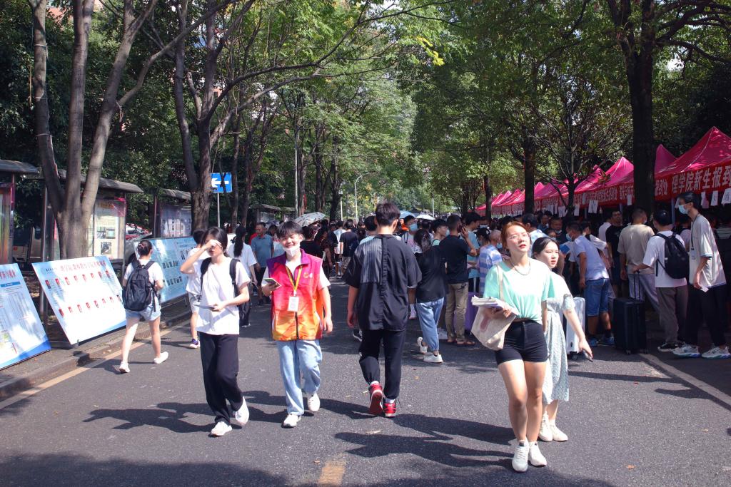 今日的城院,处处洋溢着青春的气息。南门校名石广场处,“欢迎2021级新同学”的大型背景展板在阳光的映射下熠熠生辉,格外醒目,成为2021级新生打卡拍照首选地。在龙城大道,各学院报到点熙熙攘攘,身着红马甲和佩戴红袖带的志愿者往来于人群中,成为一道靓丽的风景线。“青春由磨砺而出彩,人生因奋斗而升华”“道阻且长,行则将至,行而不辍,未来可期”“往后四年,宿舍有你,教室有你,食堂有你,心里有你”……一条条迎新横幅掩映于浓浓的绿荫之中,既温情体贴,又催人奋进。