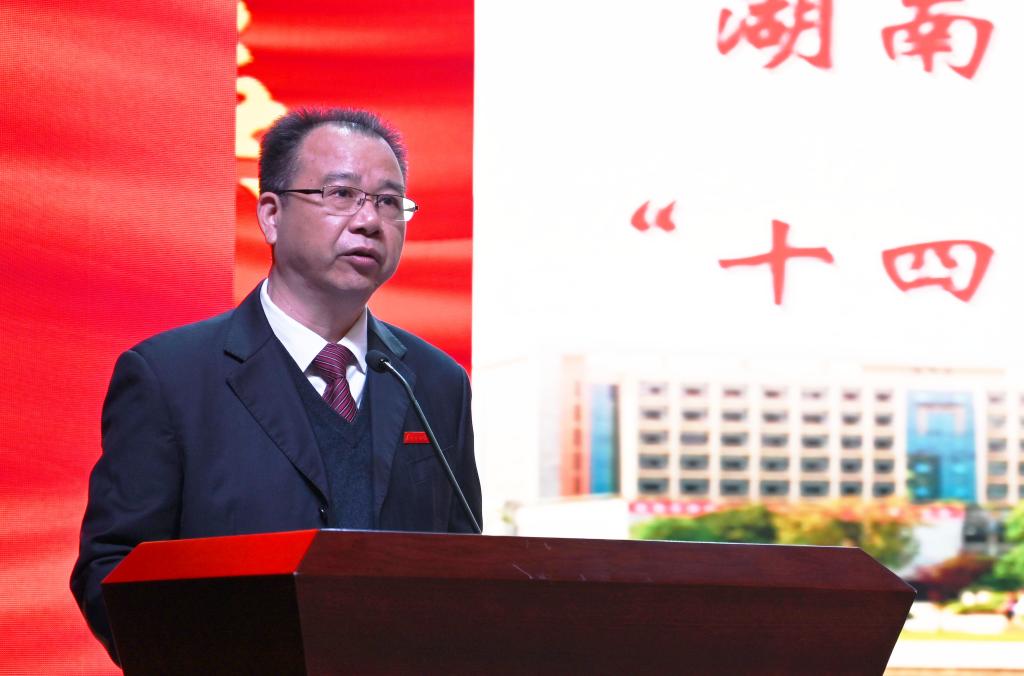本网讯(记者 文彦波 摄影 博夕 朱李红)2021年11月17日上午,学校在音乐厅隆重召开申硕工作总结暨“十四五”规划核心指标奋进大会。全体校领导,副处以上干部、受表彰人员以及二级学院博士、教授、系(室)中心主任、支部书记代表共200余人参加会议。党委书记李建奇出席会议并讲话,党委副书记、校长汤放华主持会议。