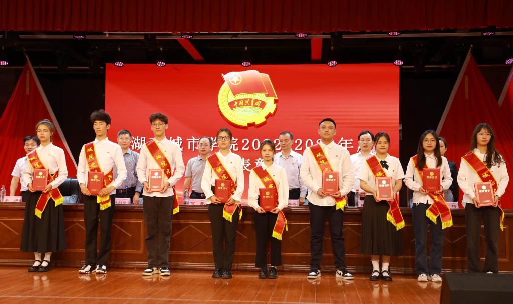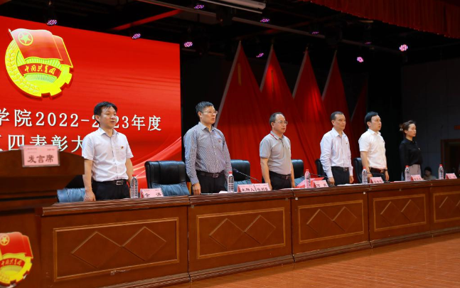 在激昂的国歌声中,表彰大会拉开序幕。副校长雷存喜宣读了《关于表彰荣耀体育官方网页版_荣耀体育(中国)第二届“活力团支部”和“城院之星”的决定》《关于表彰荣耀体育官方网页版_荣耀体育(中国)2022年度共青团工作先进集体和优秀个人的决定》。据悉,此次学校共评出“五四红旗团总支”4个,“优秀团支部”86个,“活力团支部”14个,“城院之星”18人,“优秀教师团干部”4人,“优秀共青团干部”273人,“优秀共青团员”376人。