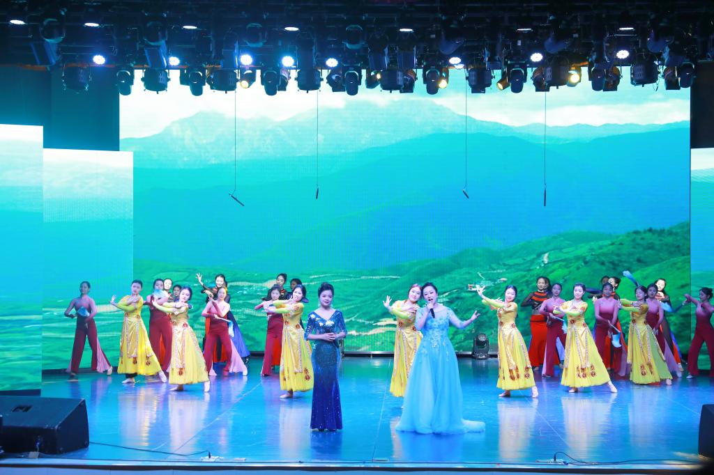 活动伊始,全场肃立,共唱国歌。随后,一曲震撼人心的器乐合奏《龙腾虎跃》拉开演出序幕,现场观众在鼓乐合奏中感受到了神州大地欣欣向荣、龙腾虎跃的繁荣景象。接下来的彝族舞蹈《守护》以舞蹈艺术方式向红色经典致敬,展现了彝族人民与红军诚挚的革命情谊。舞剧《天路》、歌曲《向往》《如愿》《春天的芭蕾》《领航》一一亮相,充分表达了青年学子对祖国的无限热爱,在艺术中学思想、强党性。舞蹈《云梦情》、歌曲《八百里洞庭美如画》描绘了江南的风光秀丽,展示人与自然和谐共生的美好生活。京剧折子戏《武家坡》展现了中国戏曲艺术的独特魅力;朗诵《奋斗青春,城院有我》体现了城院学子青春奋斗的决心,鼓励当代青年积极融入新时代奋进的浪潮,勇毅前行。演出在歌舞《美丽中国》中徐徐落下帷幕。