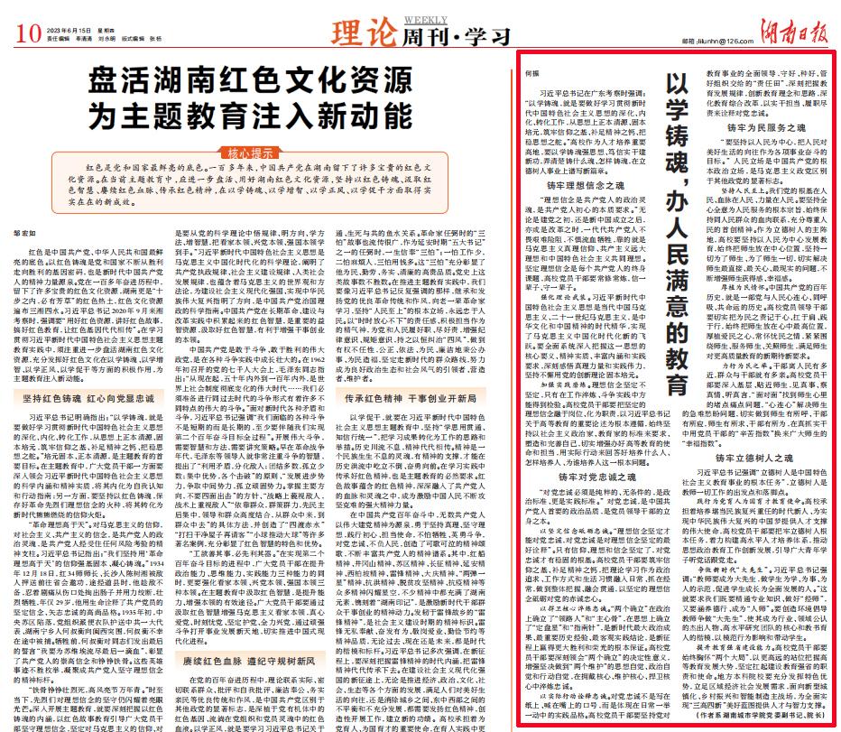 本网讯 6月15日,《湖南日报》10版“理论周刊·学习”刊发荣耀体育官方网页版_荣耀体育(中国)校长何振署名文章《以学铸魂,办人民满意的教育》,全文如下: