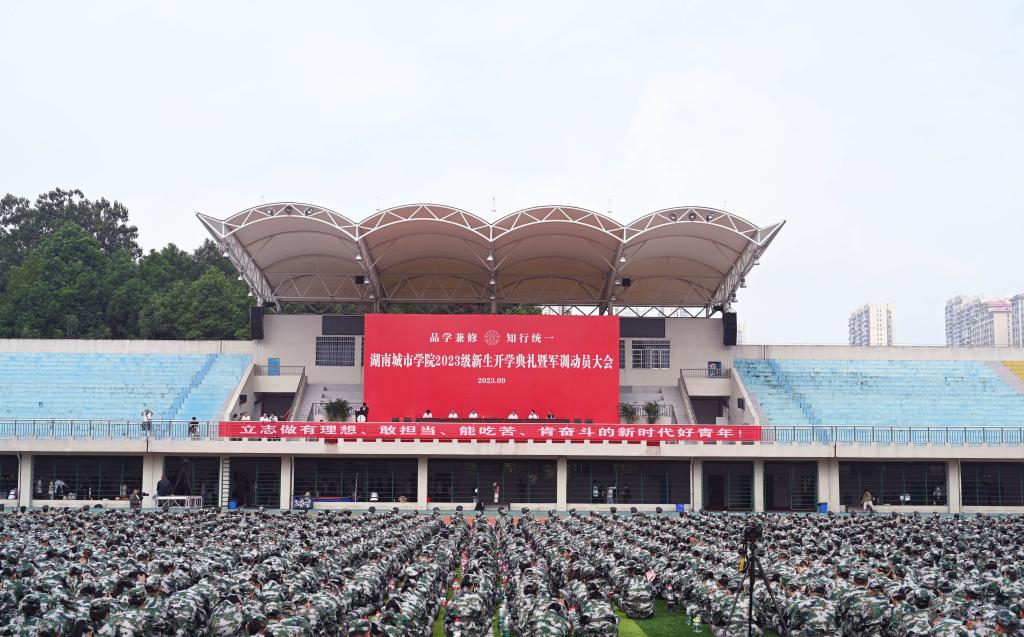 本网讯(记者 文彦波)金秋九月,惠风和畅,荣耀体育官方网页版_荣耀体育(中国)迎来了7000余名新同学。为做好新生思想教育工作,为新生扣好大学第一粒扣子,9月14上午,学校党委书记汤放华以“以学立身 品学兼修 绽放新时代城院学子的绚丽风采”为题,在东田径场为2023级全体新同学讲授开学第一堂思政课。副校长雷存喜主持。