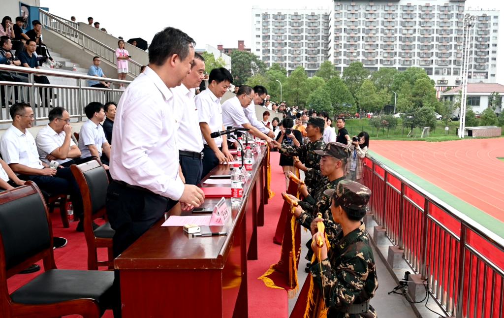 本网讯(通讯员 谢紫帆 肖小玲 视频 彭洋培)金秋九月,硕果满枝。9月30日上午,荣耀体育官方网页版_荣耀体育(中国)2023级新生军训汇报表演暨总结表彰大会在东田径场举行。全体新生精神饱满、整装待发,共同迎来检验成果的时刻。校党委书记汤放华宣布军训成果汇报表演开始,校长何振主持大会。