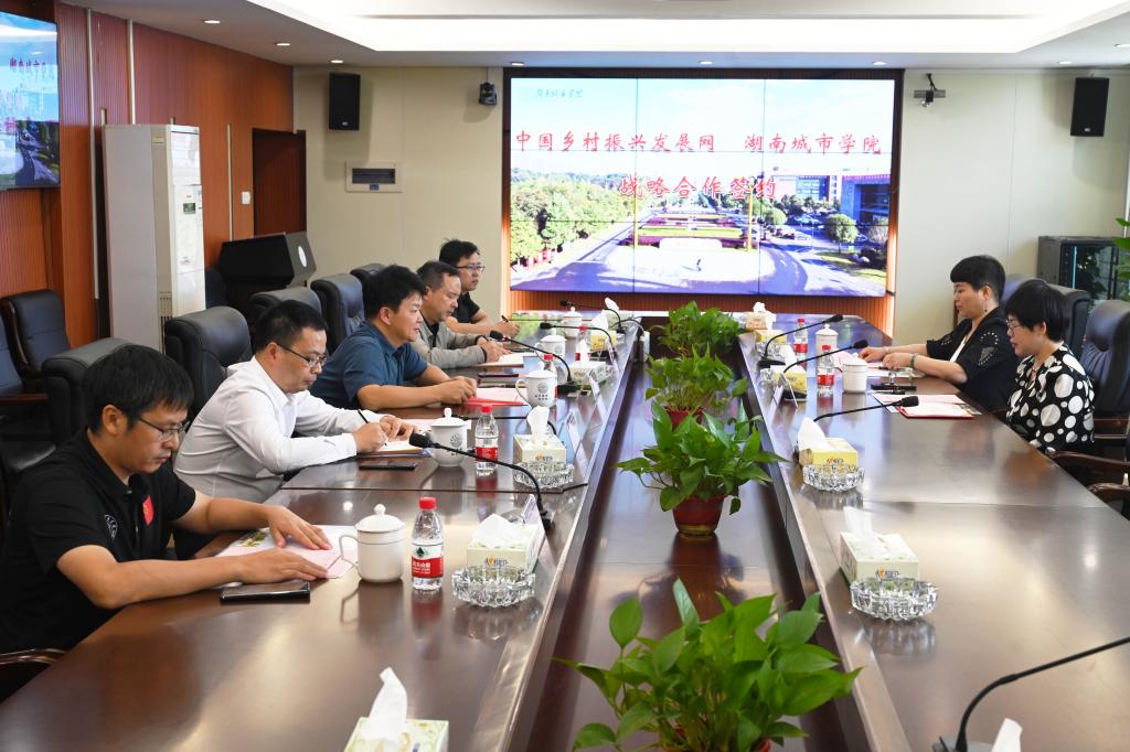 本网讯(供稿:科研处)10月17日,荣耀体育官方网页版_荣耀体育(中国)与中国乡村振兴发展网战略合作协议签约仪式在办公楼一会议室举行。中国乡村振兴发展网总编辑、中国社会科学院《中国乡村振兴发展报告》主编王冰,校党委书记汤放华,副校长袁志成,党委委员、组织部部长吕贤军出席签约仪式。