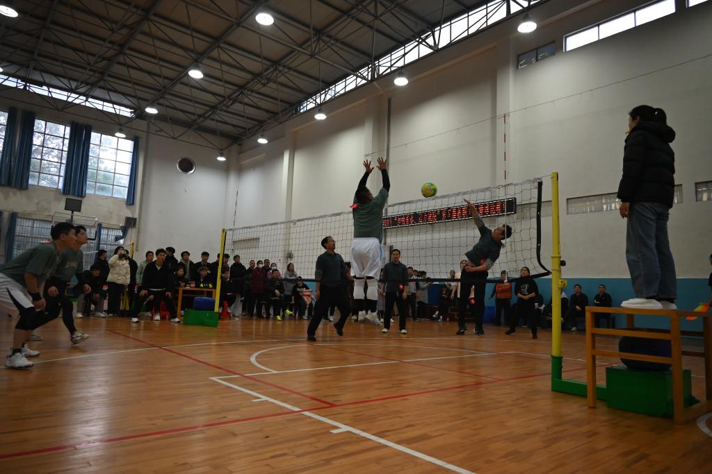 本次比赛由校工会主办,体育学院承办,分预赛、决赛2个阶段,其中预赛阶段分成A、B两组,采用单循环赛,每组前四名出线;决赛阶段,由出线的8个队采用单淘汰决出名次。赛场上,各参赛队伍本着“友谊第一,比赛第二”的原则,全身心地投入到比赛中。运动员分工协作、配合默契,敢打敢拼,接球、传球、起跳、扣杀……每一个动作都发挥得淋漓尽致,个个斗志昂扬,为观众呈现了一场场扣人心弦的精彩对决。裁判员恪尽职守,公正严明。同时,为活跃赛事气氛,各二级学院分工会还组织了啦啦队表演,为赛事增添了一道靓丽的风景线。