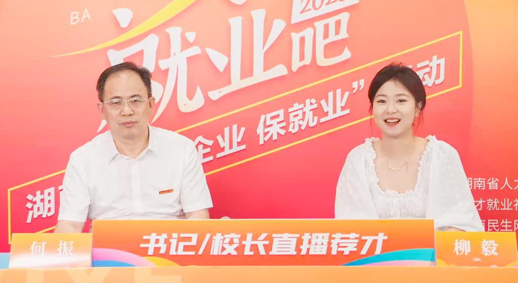 本网讯(招生就业处供稿)“掌握新媒介沟通方式,对教育工作者来说是一种必要的能力提升。它能帮助我们更有效地连接社会,共同为学生的未来发展搭建桥梁。”6月11日下午,在湖南省人社厅主办的“逐梦三湘 就创未来”书记/校长直播荐才系列活动中,党委副书记、校长何振化身就业推荐官,携带精心挑选的毕业生简历走进直播间,为2024届毕业生“代言”,开辟毕业生就业新路径,搭建校企对接新桥梁。